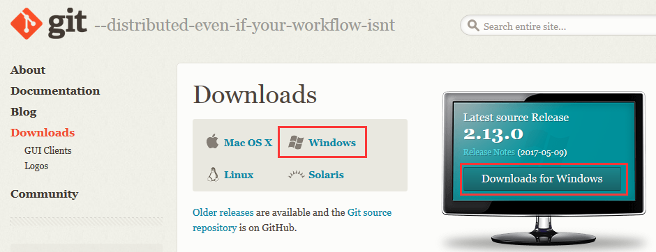 1.从git官网下载一个git安装包,官网下载地址http://www.git-scm.com/download/