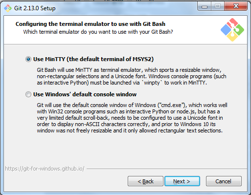7.设置环境,选择使用什么样儿的命令行工具,一般情况我们使用默认配置,使用Git Bash,点击【Next >】
