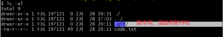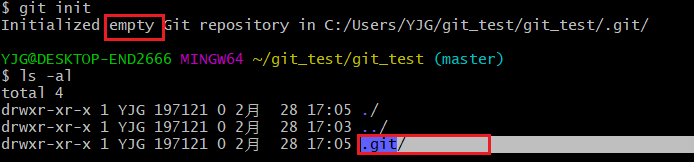 说明:可以看到在git_test目录下创建了一个.git隐藏目录,这就是版本库目录。