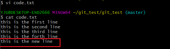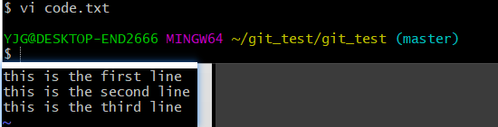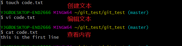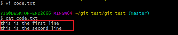 (1)在git_test目录下创建一个文件code.txt,编辑内容如下: