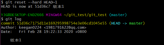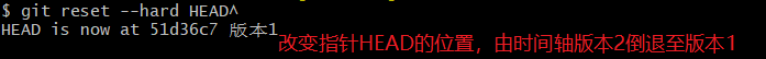 $ git reset --hard HEAD^ HEAD is now at 51d36c7 版本1