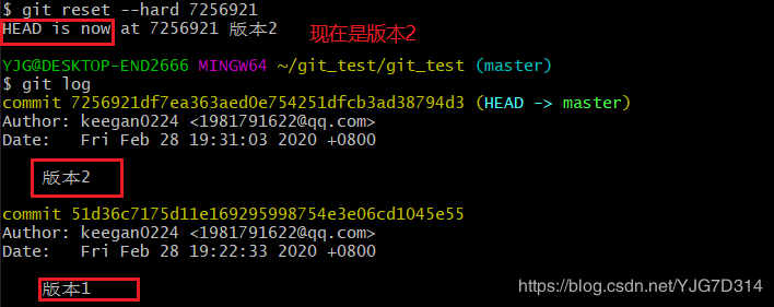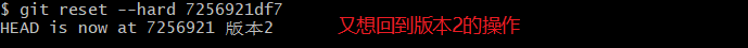 (7)假如我们现在又想回到版本2,这个时候怎么办?可以使用如下命令:
