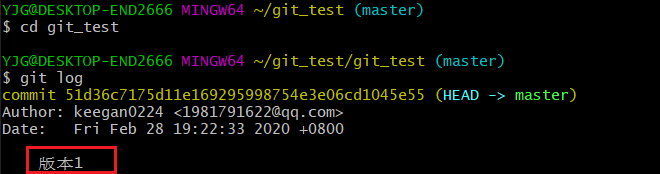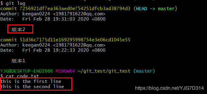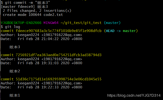 (5)使用如下命令再创建一个版本并查看版本记录: