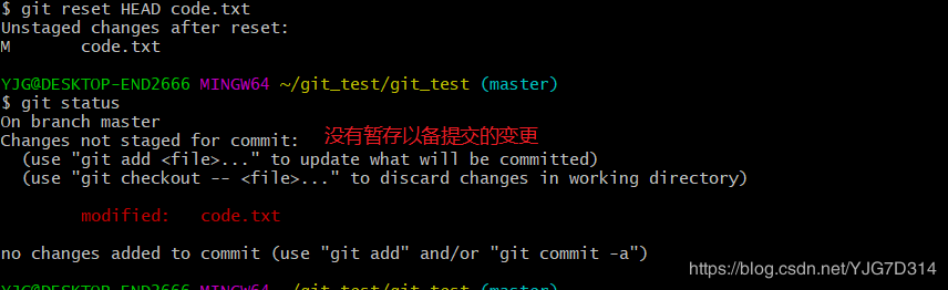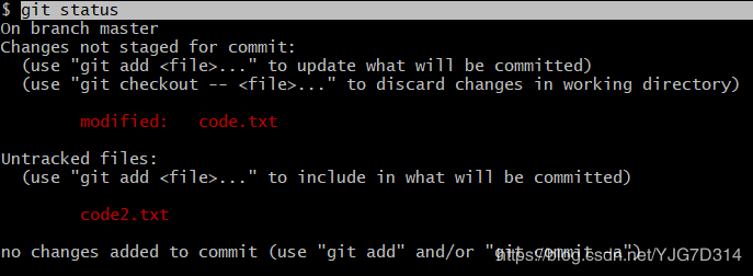 上面提示我们code.txt被修改,而code2.txt没有被跟踪。