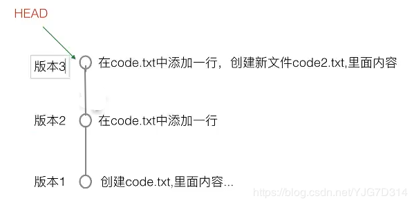 注意:指针HEAD永远指向当前版本。此时当前版本是版本3。
