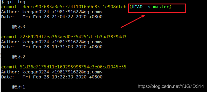 其中HEAD表示当前最新版本【请记死】,HEAD^表示当前版本的前一个版本,HEAD^^表示当前版本的前前个版本,也可以使用HEAD~1表示当前版本的前一个版本,HEAD~100表示当前版本的前100版本。