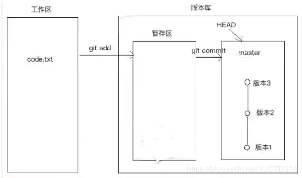 工作区有一个隐藏目录.git,这个不是工作区,而是git的版本库。git的版本库里存了很多东西,其中最重要的就是称为stage(或者叫index)的暂存区,还有git为我们自动创建的第一个分支master,以及指向master的一个指针叫HEAD。