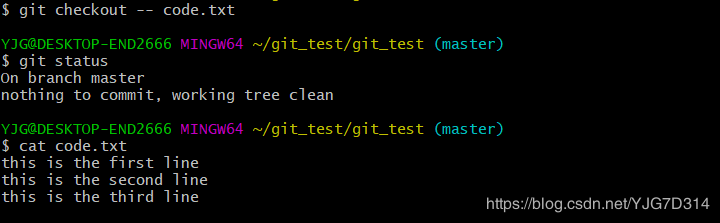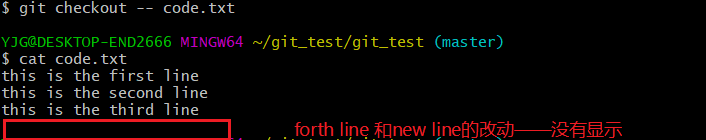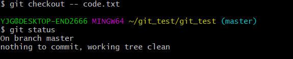 (4)现在若想丢弃code.txt的修改,执行如下命令即可。