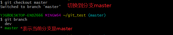 (4)dev分支的工作完成,我们就可以切换回master分支: