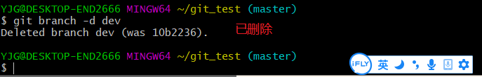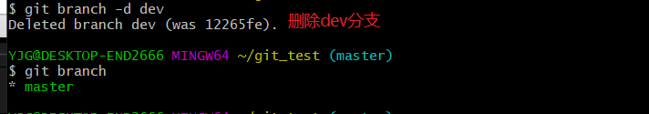 (6)合并完成后,就可以放心地删除dev分支了,删除后,查看branch,就只剩下master分支了。