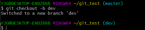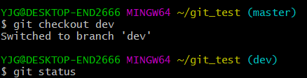 (2)下面创建一个分支dev并切换到其上进行工作。