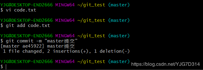 (3)下面我们修改code.txt内容,在里面添加一行,并进行提交。