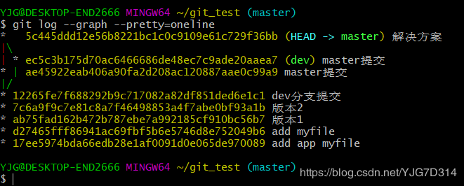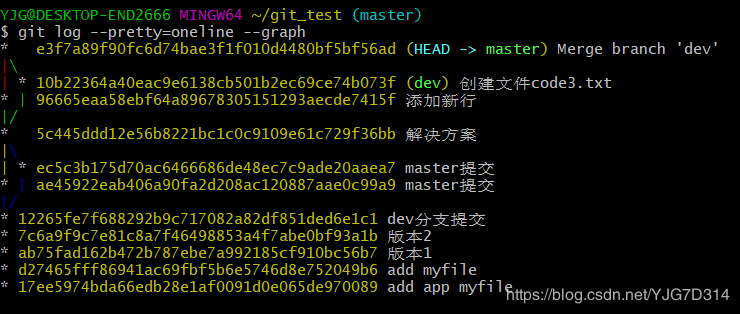 (5)现在,我们把dev分支的工作成果合并到master分支上: