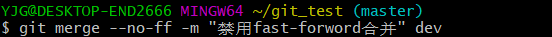 (4)准备合并dev分支,请注意–no-ff参数,表示禁用Fast forward: