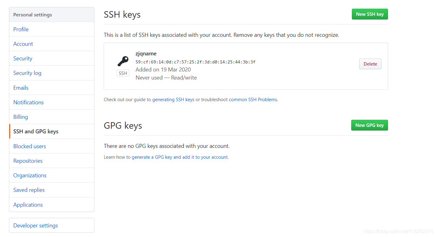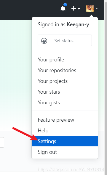 (1)点击账户头像后的下拉三角,选择'settings'如果某台机器需要与github上的仓库交互,那么就要把这台机器的ssh公钥添加到这个github账户上。