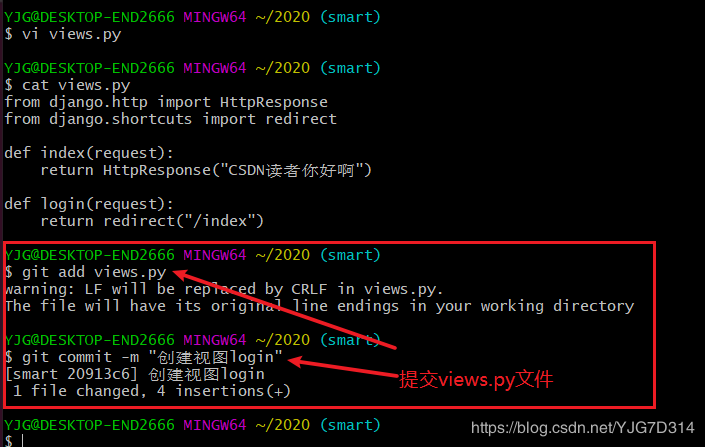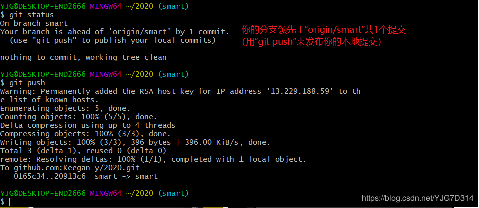 使用上述命令会把远程分支smart上的代码下载并合并到本地所在分支。