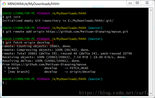 下面拉取远程的develop分支,命令: