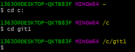我在C盘下创建文件夹git1,当作我的本地仓库,在git bash中打开: