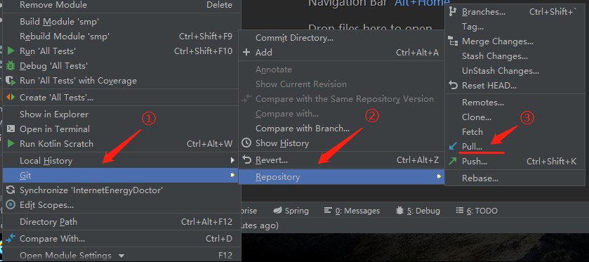 2. 然后点击 Pull,这样就将本地的代码更新到最新了;