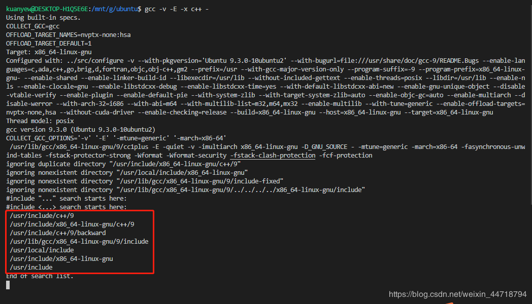 执行命令查看g++包含路径