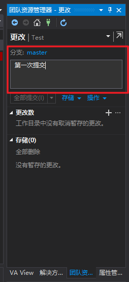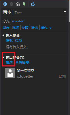 2、在VS中的同步功能测试——点击同步/推送是否等同于(同步/推送+提交)呢?