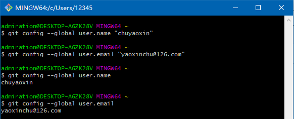 git config --global user.email yaoxinchu@126.com