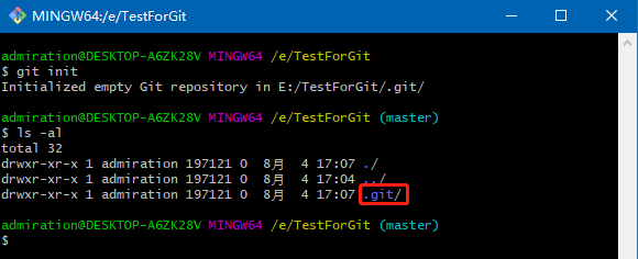 输入ls -al可以看到目录下有个.git的文件夹,但这个目录默认是隐藏的。