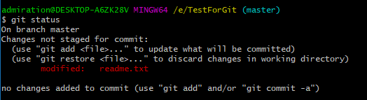 会报出如上所示的错误!modified: readme.txt no changes added to commit