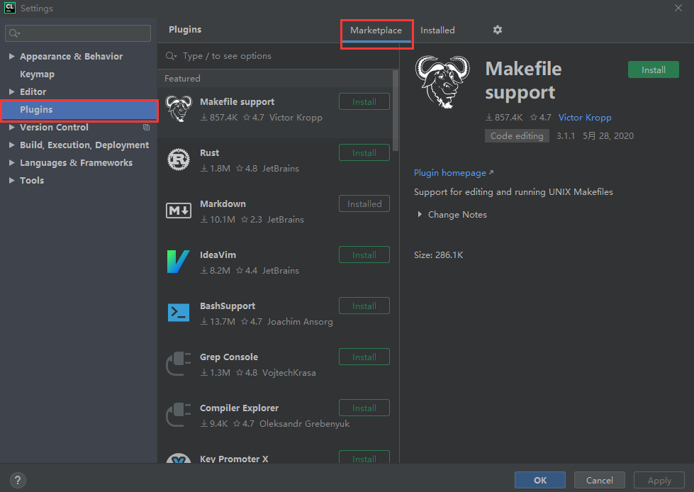 而后点击plugins,选择marketplace