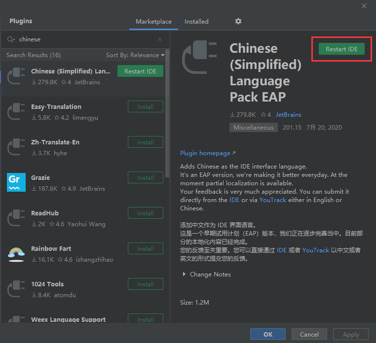clion、ieda、pycharm默认界面为英文界面,可能很多新用户用着不习惯,但现在新版本开始支持中文界面了