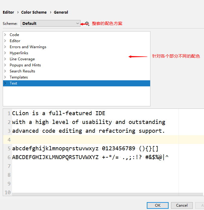 然后在右侧选择设置即可,上面scheme中是一些主流的主题配色方案,使用最多的就是default(白色背景)、darcula(暗黑背景)