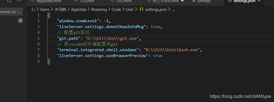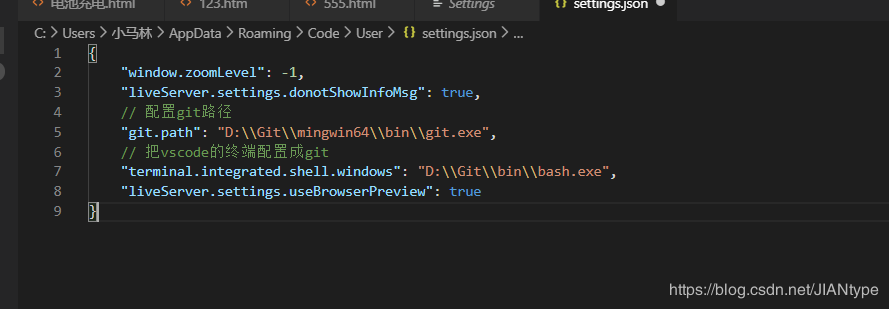 今天给vscode配置git的时候,差点没把我送走,我在配置git项目的时候会,看了一个博客文章的教学,其中配置路径的方法如下