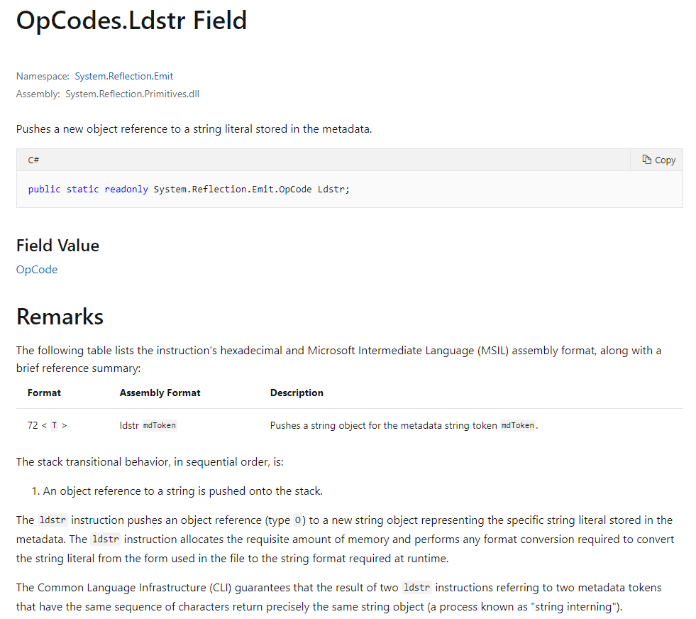 Microsoft 技术支持文档中 ldstr 的解释