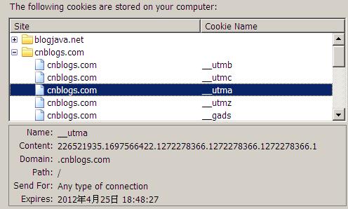 先看看博客园的cookie是怎么设置的,下面是firefox查看博客园cookie的截图: