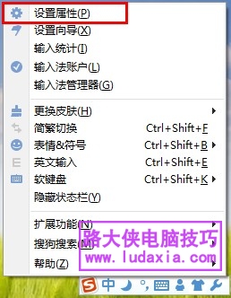 首先,右击输入法长条,点击“设置属性”,调出“搜狗输入法设置”界面;