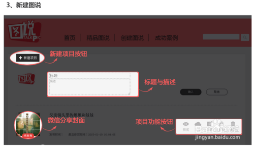 3、点击新建项目,创建新的图说项目,设置标题及描述,进入内容编辑