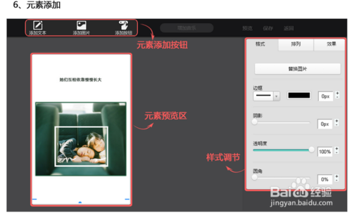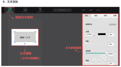 8、为背景及图片添加文本内容,编辑适当字数
