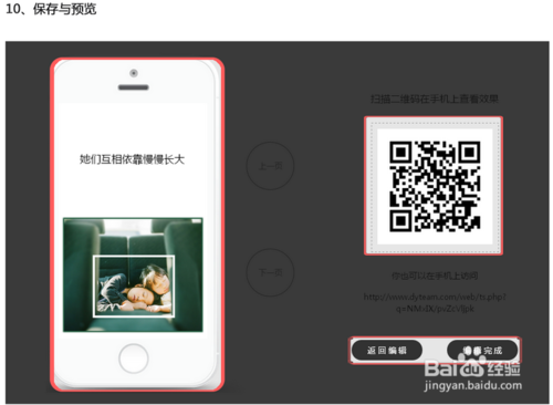 10、右上角点击“预览”按钮即可进入作品预览界面,保持作品后可用手机扫描查看效果