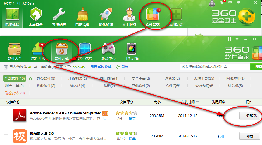 方法一:我们利用360安全卫士卸载,软件管家==软件卸载==卸载