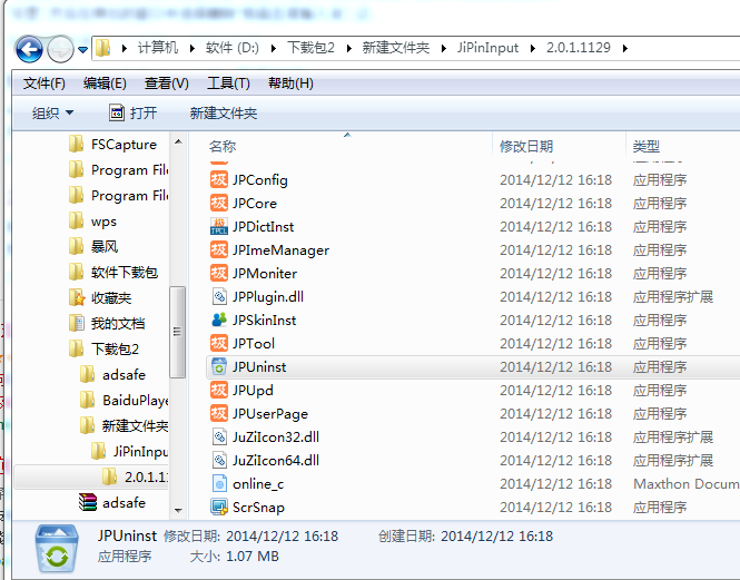 方法三:我们在安装极品五笔的安装位置找到“JPUninst”程序双击。