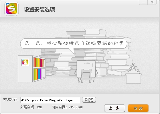 下载解压后运行sogou_wallpaper.exe即可开始安装,安装过程最好选择自定义安装