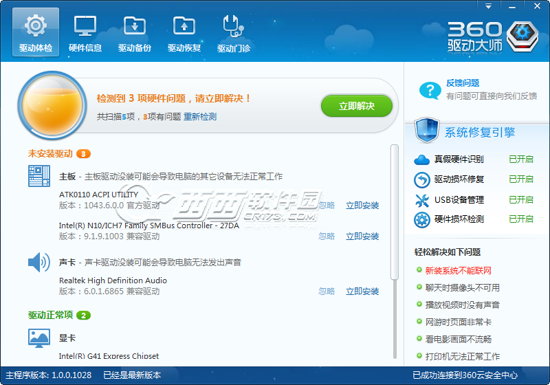 360驱动大师这款出自360的驱动检测安装软件比起驱动精灵来说还是有不足的地方的,不过这款软件的功能也在不断的完善当中。