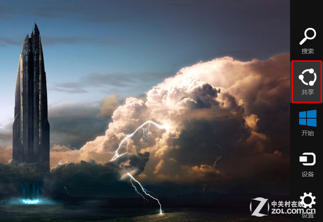 Windows 8.1将分享的内容直接集成在了系统中,使用起来也是非常的简单。首先在传统桌面模式下,我们将鼠标移动到屏幕右上角或右下角调出“超级按钮”,在这里我们就能看到“共享”的选项了。