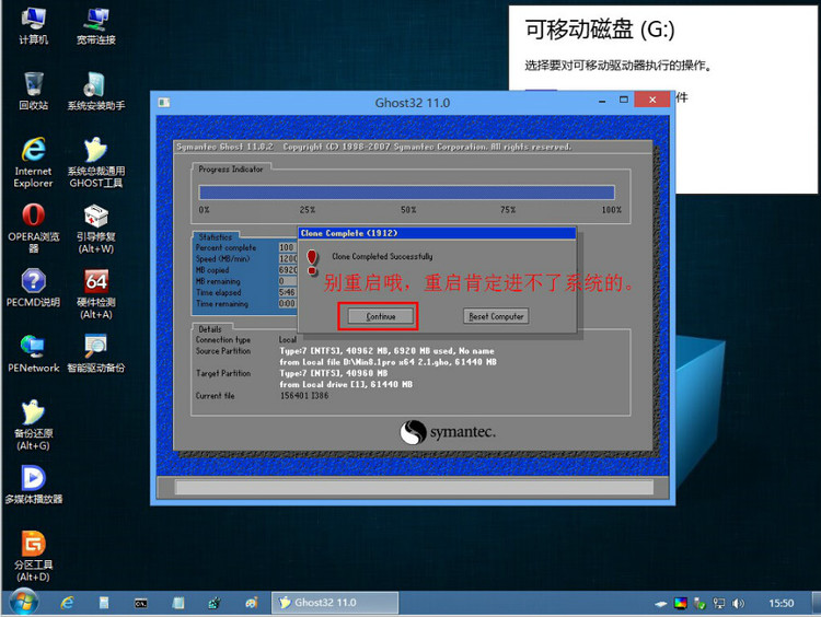 4、用PE里面的GHOST工具把GHO克隆进C盘。如下图: