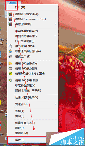1、右击vmware虚拟机图标打开属性;