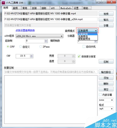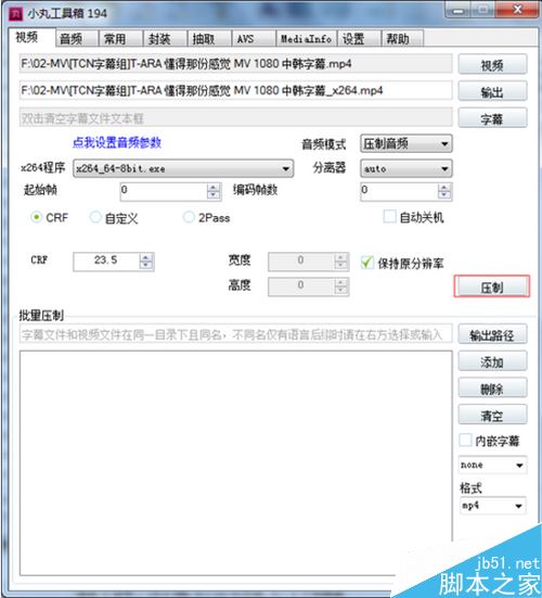 以上就是脚本之家小编为大家讲解的如何使用小丸工具箱对视频进行x264压制的教程,想了解更多精彩教程请继续关注脚本之家网站!