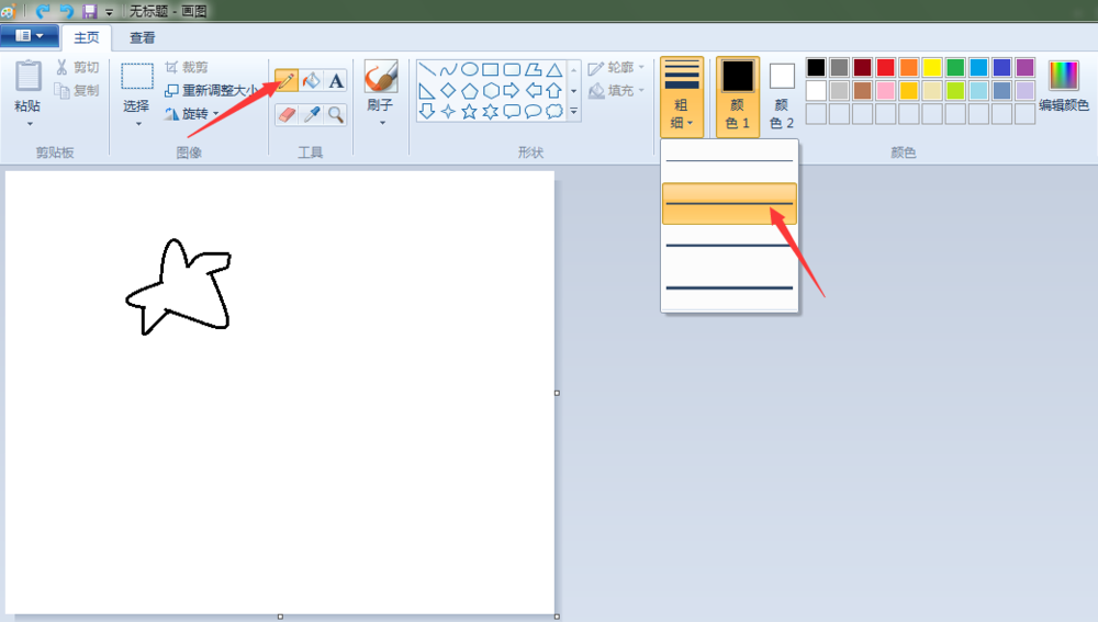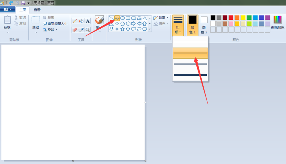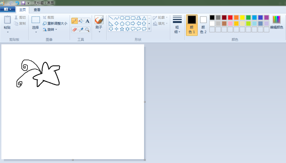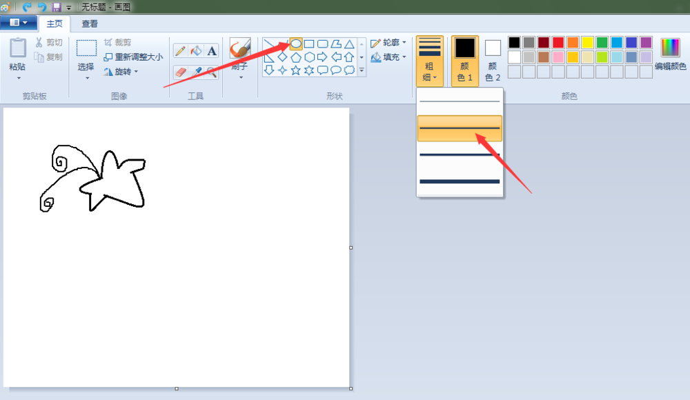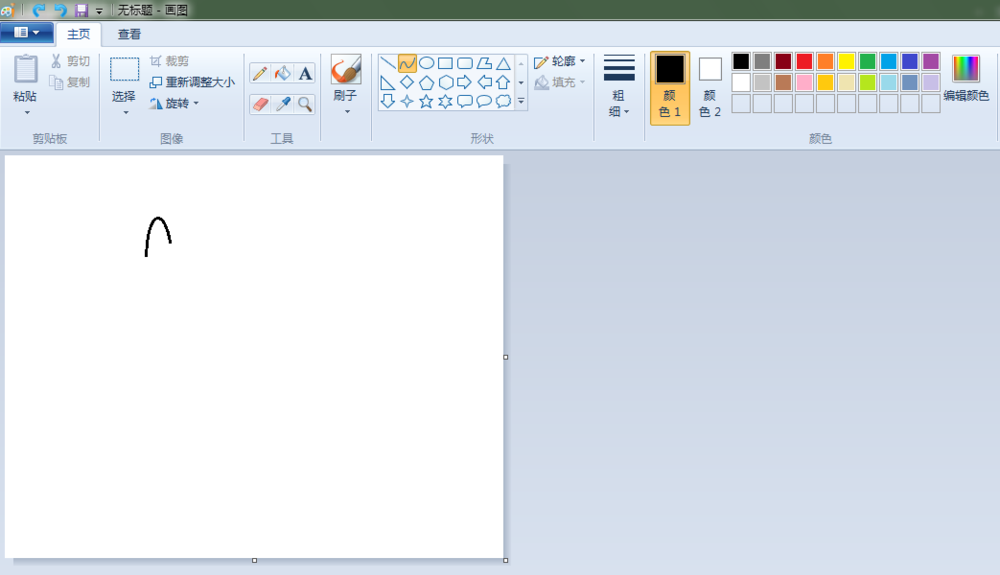 2、叶子:点击“曲线”按钮,线条粗细(第二个),先在“画纸”适当位置上画出一条曲线,之后画出整片叶子。