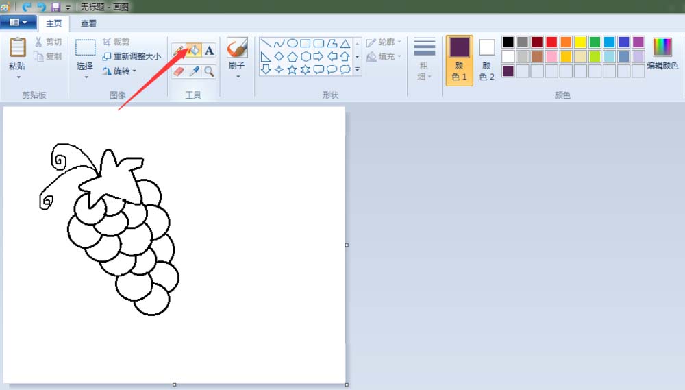 5、填充颜色:点击“用颜色填充”按钮,将葡萄涂上颜色。