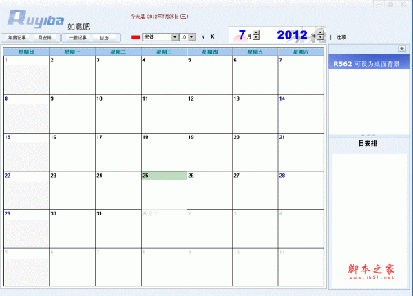 简洁(免费)的桌面日程管理(年度记事,月安排,一般记事,日历)。直观易用,不论工作安排日常记事,有了它不再望东忘西!