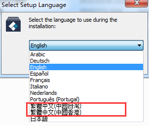 2、选择“中文语言”,这里仅有中国台湾和中国香港两个中选项